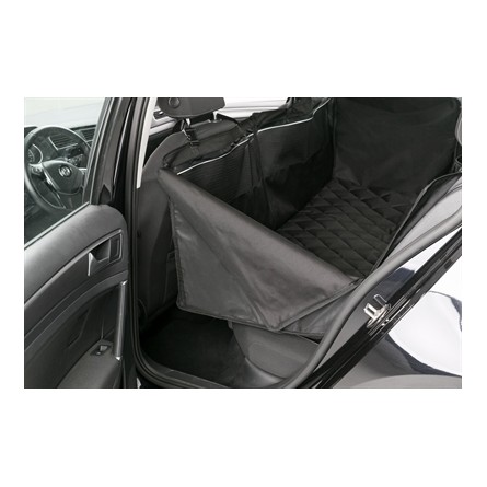 De Trixie Autobeschermdeken Zwart van 155X130 cm is een beschermdeken voor de hond, geschikt voor de achterbank van de auto, met anti-slip onderkant en hoge zijkanten. De ultieme bescherming voor jouw auto! Als jouw hond op de achterband meereist in de auto, wil je deze natuurlijk beschermen tegen haren, zand, vocht en vuil. Deze handige autobeschermdeken van Trixie is daar speciaal voor ontworpen. Deze deken is gemaakt van polyester, met een anti-slip onderzijde die ervoor zorgt dat het deken stevig op zijn plek blijft in de auto. Ook zijn er lussen gemaakt voor om de hoofdsteunen van zowel de voor- en achterstoelen voor meer stabiliteit; bovendien zorgen de hoge zijkanten voor extra bescherming van de deurbekleding. De zijkanten kunnen opengeritst worden en naar beneden geklapt om het in- en uitstappen te vergemakkelijken. Er zijn uitsparingen in het deken aangebracht om de veiligheidsriem van de hond vast te maken en je kunt het deken in tweeën splitsen, zodat er nog iemand op de achterbank kan zitten. Het deken is waterdicht en beschermt jouw bekleding zo ook op regenachtige dagen!