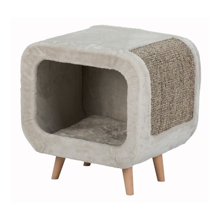 Het Trixie Alicia Relax Huis Lichtgrijs/Grijs Gemêleerd 48X48X38 cm is een schuilplaats en kattenmand in één! In dit leuke schuilhutje kan jouw kat lekker relaxen. Dit gezellige huisje is bekleed met pluche en voorzien van een sisal-krabvlak. Het huisje functioneert zo ook als een soort kleine krabpaal, daar de kat ook zijn of haar nagels er lekker aan kan scherpen. In de schuilruimte kan de kat zich verstoppen en heerlijk slapen op de bekleding van pluche. In de schuilhut vind je een wendbaar kussen voor meer comfort. Ook kan je kat ervoor kiezen om op het kattenhuis te gaan liggen voor wat meer overzicht. Tot slot staat dit relax-schuilplaatsje leuk in je huis door de speelse vorm en beukenhouten pootjes.