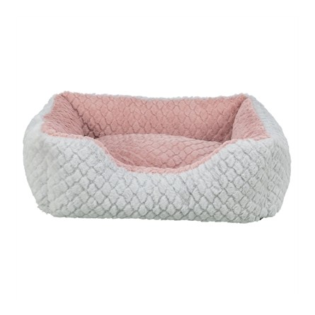 De Trixie Hondenmand Kaline Mio Hoekig Grijs/Oudroze is een zachte en comfortabele ligplek voor honden die graag heerlijk ontspannen. De mand is uitgevoerd in zacht structuurpluche en heeft een warme polyester bekleding met een vulling van polyesterwatten. Dankzij het uitneembare en omkeerbare kussen kun je eenvoudig variëren tussen twee looks en de bekleding is afneembaar voor makkelijke reiniging. De slipvaste onderkant zorgt ervoor dat de mand stevig op zijn plaats blijft, ook op gladde vloeren. De afneembare bekleding is wasbaar op 40°C.