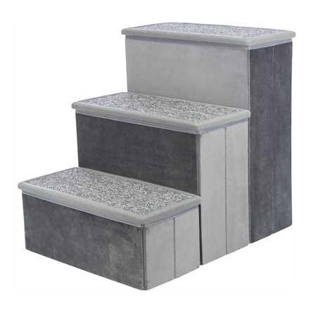 De Trixie Trap Met Opbergruimte Grijs 34X50X45 cm een met tapijt beklede hondentrap met afneembare treden en opbergruimte die inklapbaar is. Helpt jouw huisdier een handje op hogere plekken te komen met deze mooie trap van Trixie. De trap is bekleed met velours van Polyester en de treden zijn bekleed met tapijt voor een goede grip. De trap biedt opbergruimte door de afneembare treden en is in te klappen om compact op te bergen. Het draagvermogen is maximaal 50kg. Een mooi en handig hulpstuk voor jouw trouwe maatje!