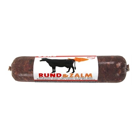 Samenstelling: spiervlees en botten zalm, runderpens, lever, hart, nieren, long, rundvlees