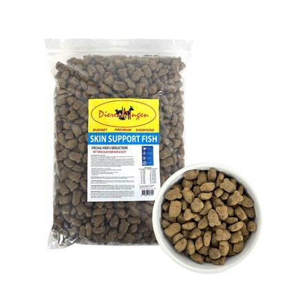 Budget Premium Skin Support Fish is een volledige hondenvoeding voor honden met een gevoelige huid of een doffe, slechte vacht. Deze smakelijke brokken combineren gevogelte, vis en zalmolie en zijn rijk aan Omega 3- en 6-vetzuren. Die vetzuren ondersteunen niet alleen de huid en vacht, maar dragen ook bij aan de weerstand en de stofwisseling. Door de tarweglutenvrije samenstelling is dit voer ook geschikt voor gevoelige honden.