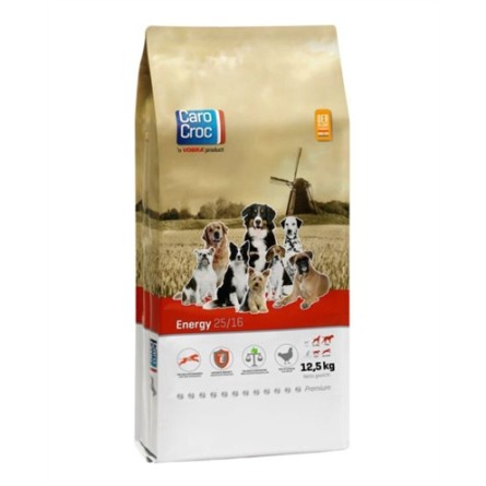 De CaroCroc Energy 25/16 12,5 kg is volledig geëxpandeerde hoogenergie voeding in brokken voor volwassen honden met zware inspanning. Unieke samenstelling van vlees, vetten en granen. Deze streng geselecteerde grondstoffen, aangevuld met vitamines, sporenelementen en mineralen in de juiste verhouding, zorgen dat honden met zware inspanning steeds in topconditie blijven. Carocroc 25/16 is een "premium" voer voor politie-, bewakings-, ren- en sledehonden, drachtige en zogende teven, dekreuen, alsmede alle honden welke in topconditie moeten blijven, ondanks zware prestaties. Carocroc 25/16 bevat extra Omega 3 en 6. Carocroc 25/16 is smakelijk en bevat geen kunstmatige toevoegingen.