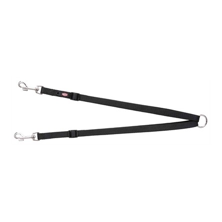 De Trixie Hondenriem Premium Koppellijn Zwart van 40-70 x 1,5 cm is een dubbele lijn om twee honden aan één riem te kunnen koppelen. De lijn heeft een handig oog waar je de riem aan vastklikt en loopt uiteen in twee gespen, die je aan twee verschillende halsbanden kunt klikken. Zo kun je met twee honden tegelijk lopen zonder dat je meerdere flexi's of riemen hoeft vast te houden. De koppellijn is bovendien voorzien van extra oogjes zodat je er een penning of flasher aan vast kunt maken.