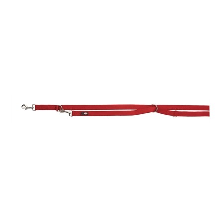 De Trixie Premium Hondenriem Dubbelgestikt Verstelbaar Rood 200 x 1 cm is een nylon looplijn voor de hond van singelband, drievoudig verstelbaar en met extra oogjes. Zo is de lijn geschikt voor meerdere doeleinden en kan je jouw hond op een lengte laten lopen die voor de situatie het meest geschikt is. Je kunt hem eenvoudig verstellen door de musketonhaak aan één van de ringen te klikken. Ook de andere kant eindigt in een musketonhaak, voor gemakkelijke bevestiging aan halsband of tuig. De extra oogjes zijn ook geschikt om bijvoorbeeld een penning of lampje aan te hangen. Strak, degelijk en toch heel functioneel!