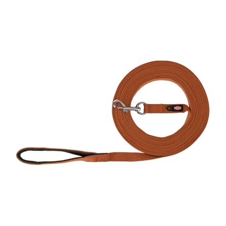 De Trixie Hondenriem Sleeplijn Katoen Roest Bruin 10mtrX2cm is gemaakt van sterk katoen en voorzien van een musketonhaak. Een belangrijk voordeel van een sleeplijn is dat het je hond meer vrijheid geeft om te verkennen terwijl jij de controle behoudt. De riem heeft een gevoerde handlus, wat zorgt voor een soepele en eenvoudige hantering. Geef je hond de vrijheid om te verkennen met deze praktische sleeplijn!