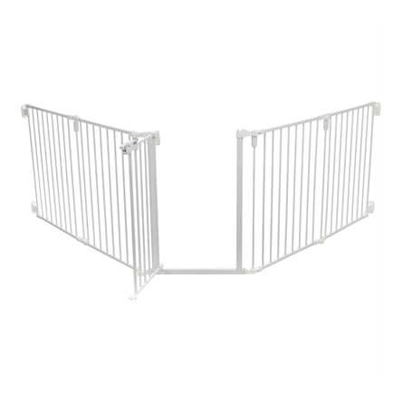 Het afsluithek bestaat uit 5 panelen van elk 62,5×76,5 cm, inclusief een praktische deur voor eenvoudig in- en uitlopen. De panelen zijn flexibel te plaatsen, waardoor je het hek aanpast aan jouw woonruimte. Perfect voor thuisgebruik in bijvoorbeeld deuropeningen, gangen of als kamerverdeler.