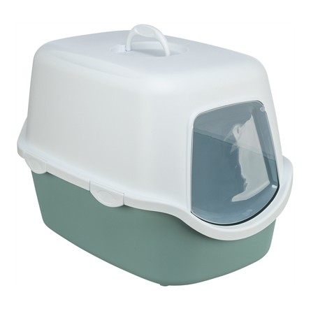 De Trixie Kattenbak Vico Salie/Wit 56X40X40 cm is een kunststof kattentoilet met kap en Easy-Click sluitingen. Deze stijlvolle kattenbak van Trixie blinkt uit in functionaliteit. De Vico kattenbak is een kattentoilet met kap en deur, om de kat een beschermd gevoel te geven en nare geurtjes binnen te houden. De kap is met de Easy-Click sluitingen eenvoudig los te maken van de onderbak voor gemakkelijke reiniging. Het handvat aan de bovenkant maakt verplaatsen gemakkelijk.