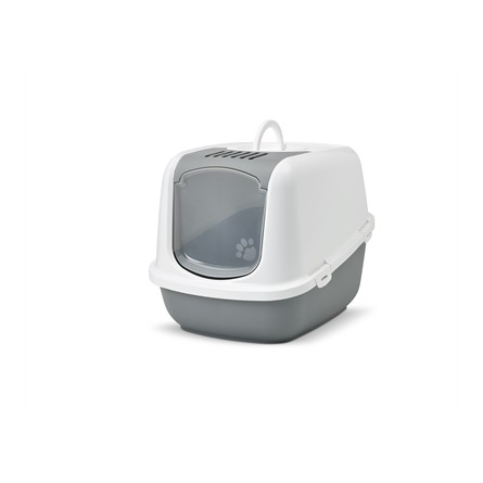 De Savic Kattenbak Nestor Jumbo Koudgrijs/Wit 66,5X48,5X46,5 cm is een modern, extra groot kattentoilet met topopening voor een snelle reiniging. Ideaal voor grotere kattenrassen en huishoudens met meerdere katten! Deze kattenbak is door het handige design erg makkelijk schoon te maken. De voorkant gaat extra ver open, waardoor uitscheppen gemakkelijk gedaan kan worden zonder de hele kap te hoeven verwijderen. De onderbak heeft een extra hoge achterzijde waardoor lekkage voorkomen wordt. Daarnaast is de kattenbak uitgerust met handgreep, kunststof deur en verwisselbare koolfilter om nare luchtjes rondom de kattenbak te voorkomen.