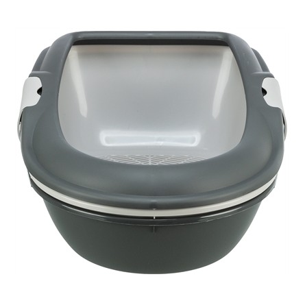 De Trixie Berto Kattenbak Met Scheidingssysteem Grijs/Patselblauw/Graniet 39X22X59 cm is een open kattenbak met een hygiënisch scheidingssysteem ter het eenvoudig verschonen van de kattenbak. De kattenbak bestaat uit verschillende lagen, namelijk twee bakken en een zeef. Door het grit uit de bovenste bak door de zeef in het midden heen in de onderste bak te gooien, kun je jouw grit zo eenvoudig hergebruiken zonder de klonten en ontlasting die door de zeef uitgefilterd zijn. Door de Easy Click-sluitingen is het zeer eenvoudig de bakken van elkaar los te maken en zijn deze ook gemakkelijk weer op elkaar te klikken. De opstaande rand zorgt bovendien dat er minder grit uit de kattenbak gegraven wordt.