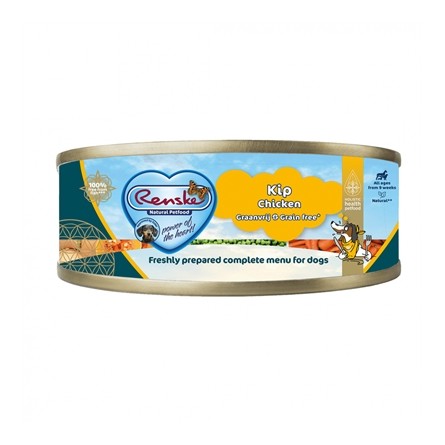 Renske Hond Vers Vlees Kip Graanvrij 24 x 95 gr is een aanvullende, vers gestoomde maaltijd voor de hond met minimaal 60% gestoomde kip als hoofdingrediënt, aangevuld met groenten en vitaminen en mineralen. Verwen jouw hond met deze heerlijke gestoomde vleesvoeding van Renske! Deze smakelijke maaltijd in handig, vacuüm verpakte kuipjes van 95 gram bevatten minimaal 60% kip, aangevuld met pompoen en heerlijke groenten. De ingrediënten zijn licht gestoomd en vacuüm geseald, voor optimaal behoud van de voedingsstoffen. Ook maakt dit de maaltijd ideaal om mee te nemen op reis of op vakantie. Bovendien is deze maaltijd graanvrij en glutenvrij.