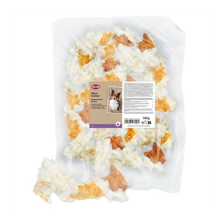 Trixie Konijnenhuid Met Vacht is een hondensnack gemaakt van 100% gedroogde konijnenhuid met vacht. Deze snack is zeer goed verteerbaar en heeft een reinigende werking voor het maagdarmkanaal van de hond.