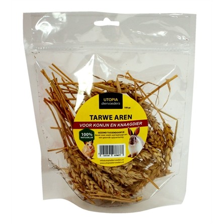 De Utopia Tarwe Aren van 100 gr zijn een smakelijke, aanvullende snack voor konijnen en knaagdieren, geheel natuurlijk en rijk aan goede vezels voor een goede spijsvertering. Verwen jouw konijnen en knagers met deze heerlijke snack! Tarwe aren zijn geheel natuurlijk en een echte lekkernij voor konijnen en knaagdieren. Het gezonde tussendoortje bevat ruwe vezels, die een goede spijsvertering ondersteunen. Geef de aren in het voerbakje of meng ze door het hooi voor extra activiteit tegen verveling.
