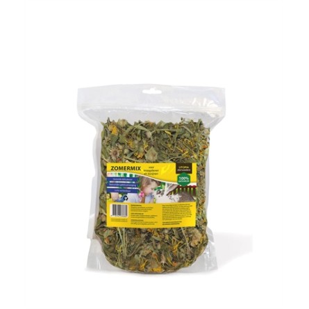 De Utopia Zomermix 140 gram is een gezonde mix van kruiden voor jouw konijnen of knager als verrijking en aanvulling op het dagelijkse voer. Deze gezonde delicatesse is licht verteerbaar en bestaat uit diverse soorten gedroogde kruiden en bloemen. Heel natuurlijk dus, want jouw konijn of knager zou deze in de natuur ook eten! De Zomermix is caloriearm maar zeer smakelijk en daarom een heerlijke afwisseling voor jouw knager of konijn, en ideal om door het voer of het hooi te mengen voor wat extra smaak.