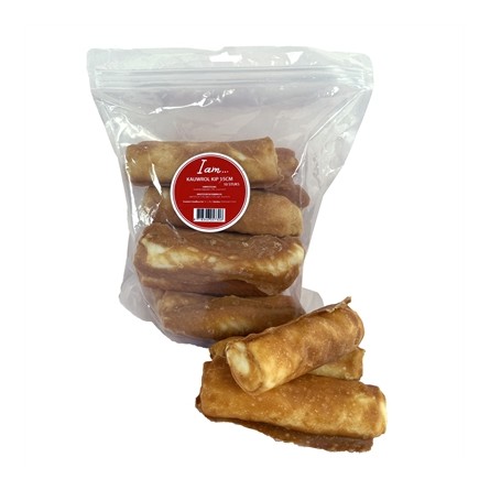 De I am Kauwrol Kip 15 cm 10 st is een lekkere kauwsnack bestaande uit runderhuid gewikkeld in gedroogde kip, zonder suiker en glutenvrij. De kauwrol is gemaakt van extra dikke runderhuid, om op te kauwen. Kauwen op runderhuid gaat verveling tegen en helpt bij het verzorgen van het gebit, omdat de huid langs de tanden wrijft en zo tandplak en tandsteen helpt te verminderen. De rol is omwikkeld met een jasje van gedroogde kip voor extra smaak en stimulans.