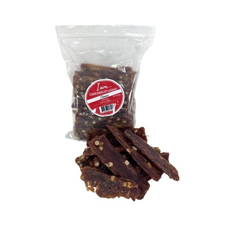 I Am Chicken D'Light Cheese is een snack voor honden, gemaakt van kipfilet en kaas. Deze eiwitrijke traktatie is ideaal als beloning of tussendoortje en geschikt voor honden van verschillende formaten.