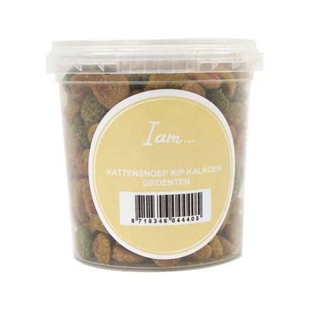 Verwen je kat met deze lekkere kattensnoepjes I Am kip, kalkoen en groente- smaak! Deze snoepjes zijn zeer volledig wat betreft ingrediënten en zorgen door de vitaminen en mineralen voor sterke botten en tanden. De essentiële vetzuren zorgen voor een glanzende vacht en gezonde huid. Door de afwisselende vormen en texturen en de krokante textuur zijn deze snoepjes een traktatie voor elke kat!