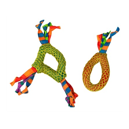 De Catstages Catnip Dental Health Chew speeltjes zijn speciaal ontworpen om het gebit van jouw kat in topconditie te houden. Het draad wat om het speeltje gewikkeld zit verwijdert tandplak wanneer jouw kat ermee speelt en erop kauwt. Om het speeltje nóg aantrekkelijker te maken, is het gevuld met catnip. Het netje zal niet gaan rafelen tijdens het kauwen. De twee speeltjes passen mooi bij elkaar door het kleurrijke ontwerp!