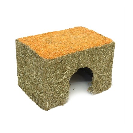 De Rosewood Naturals Knaaghut Hooi/Wortel 20X27X18 cm is een eetbaar huisje voor knaagdieren en konijnen. Knibbel, knabbel, knuisje wie knabbelt er aan dit huisje? Dit huisje voor kleine knaagdieren en konijnen is volledig eetbaar! De zijkanten van het huis zijn gemaakt van eetbaar perkament bedekt met knapperig weidehooi. Het huis wordt afgedekt door het dak gemaakt van de lekkerste wortels die er zijn! Jouw konijn of kleine knager eet zijn buikje rond aan zijn eigen huis.
