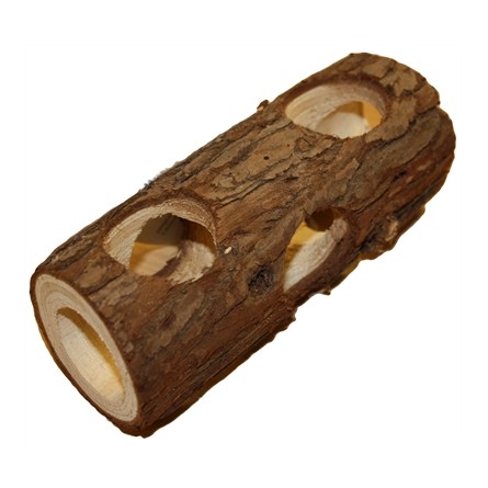 De Adventure Tunnel S 17 cm is een natuurlijke speeltunnel voor kleine knaagdieren. Deze houten tunnel heeft de vorm van een cilinder met meerdere gaten aan de zijkanten. Een leuke verstopplek die ook gebruikt kan worden als trap of klauterplaats! De tunnel is vervaardigd van 100% natuurlijk materiaal en kan dus ook veilig aangeknaagd worden. Staat leuk in elke kooi en gaat verveling tegen!