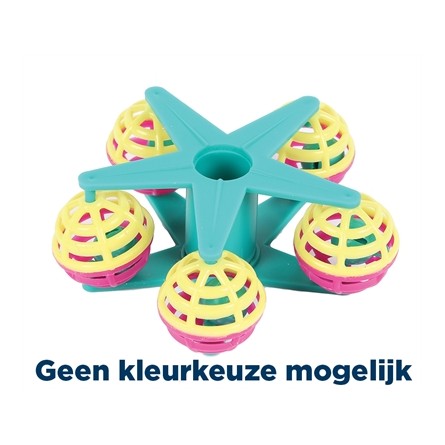 Met het Fun At The Fair Carousel vogelspeelgoed van 9,5 cm is jouw parkiet of dwergpapegaai uren zoet! Dit leuke speelgoed is bestaat uit een wiel in de vorm van een ster met aan elke punt een bal met belletje. In het midden van het wiel vind je een opening, zodat je deze om een zitstok of tak heen kunst schuiven. De vogels kunnen het wiel vervolgens draaien, met de balletjes spelen en de belletjes laten rinkelen. Extra aantrekkelijk door de leuke kleurtjes en zeer populair bij kleinere vogels zoals parkieten en dwergpapegaaien!
