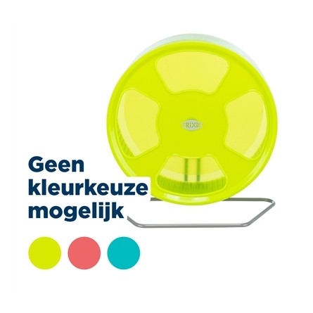 Het Trixie Looprad Kunststof Assorti 20 cm is een loopwiel van groot formaat voor muizen en dwerghamsters, voor minimale belasting van de wervelkolom en bewegen zonder geluidsoverlast. Veel dieren belasten de wervelkolom teveel tijdens het lopen in een loopwiel, omdat zij gebogen moeten lopen in een te klein wiel. Door het royale formaat van dit wiel is dat niet langer aan de order. De wervelkolom wordt minimaal belast omdat het dier veel rechter kan lopen en het gesloten loopgedeelte zorgt voor veilig rennen. Het wiel is gemaakt van kunststof voor makkelijk reinigen en loopt soepel en fluisterstil, ideaal omdat muizen en hamsters nachtdieren zijn. Het wiel is met de houder rechtop in de kooi te zetten, maar ook aan de tralies te bevestigen.