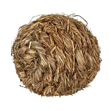 De Trixie Grasbal Met Bel van 10 x 10 x 10 cm is natuurlijk speelgoed voor kleine knaagdieren als cavia's en konijnen, voorzien van een belletje. De bal is gemaakt van gedroogd, gevlochten gras en mag dus ook aangeknaagd worden. Het belletje zorgt voor extra speelplezier en stimuleert jouw dier er mee te gooien en te rollen.