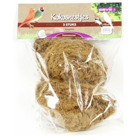 Set van 3 nestjes gemaakt van kokosvezels, een goed nest materiaal, vooral voor tropische vogels.