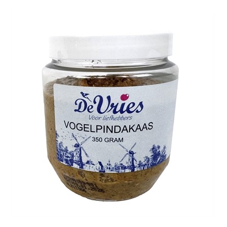 De Vries Vogelpindakaas 350 gr is aanvullende diervoeding voor tuinvogels waarmee je alle tuinvogels wat extra calorierijke voeding biedt tijdens de koude maanden van het jaar.