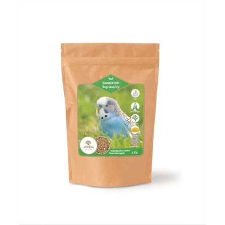De Utopia Parkieten Top Quality 1 kg is een volledige diervoeding voor siervogels met tijm, brandnetels, zeewier, eivoer en maagkiezel. Dit vogelvoer is een zeer smakelijk en gevarieerd premium vogelzaad dat speciaal geschikt is voor parkieten. De gevarieerde samenstelling voorziet volledig in de natuurlijke voedingsbehoefte. Deze complete voeding is verrijkt met diverse kruiden.