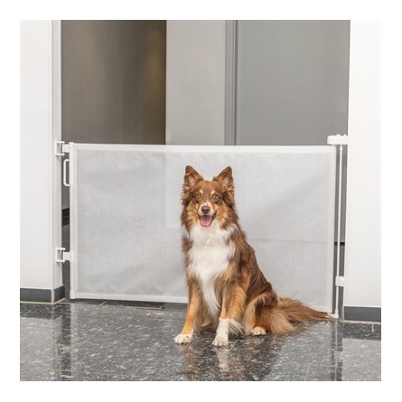 De Trixie Afsluithek Uitrolhek Wit is een praktische oplossing om bepaalde ruimtes in huis veilig af te schermen voor een huisdier. Dit traploos uittrekbare hek werkt als een rolgordijn en kan volledig in de houder worden ingetrokken wanneer je het niet gebruikt, wat zorgt voor een nette en ruimtebesparende afwerking. Het hek vormt een optische barrière, ideaal voor gebruik bij deurposten, kamers of trapopgangen. Dankzij de handige wandbeugel is het hek eenvoudig naast een deurpost aan de muur te bevestigen.