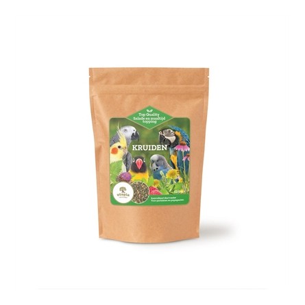 De Utopia Salade En Maaltijd Topping Kruiden 100 gr zit boordevol voedzame ingrediënten en kruiden die niet alleen de maaltijd voedzamer maken, maar ook het natuurlijke zoekgedrag van vogels stimuleren. De topping bevat gedroogde bloemen en kruiden zoals paardenbloemblad voor eetluststimulatie, kokosvlokken voor huid- en darmondersteuning, en echinaceablad voor een verbeterde weerstand en algehele gezondheid. Andere ingrediënten zoals mariadistel, frambozenblad, pepermuntblad, brandnetelblad, en kleefkruid dragen bij aan een gezonde spijsvertering, antioxidantenboost en ontstekingsremming. Voeg dagelijks een eetlepel toe aan vers gesneden groenten en fruit of meng het met het dagelijkse zaadmengsel voor een heerlijke en uitdagende maaltijd.