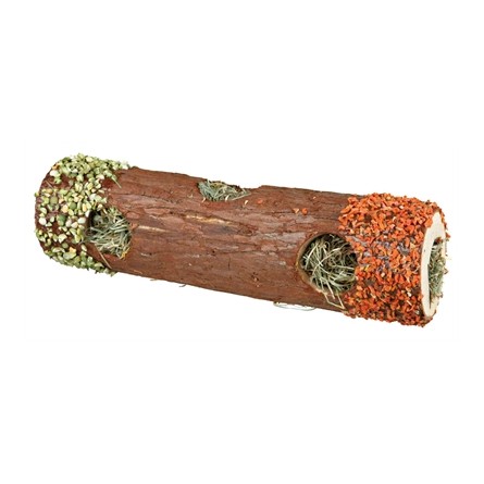 De Trixie Tunnelbuis Met Hooi En Hibiscusbloesem / Wortel / Erwt 20 x 6,5 cm is leuk natuurlijk speelgoed voor knaagdieren, een schuilplaats waar lekker aan geknaagd kan worden! Zo kan jouw dier spelen, verstoppen en lekker knagen aan veilige materialen. De tunnel is gemaakt van schorshout bekleed met hibiscusbloesem, wortel en erwt. Met hooi in de tunnel voor extra knaag- en speelplezier.