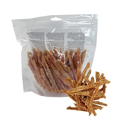 Samenstelling: Kipfilet (94,5%), glycerine, gemodificeerd maiszetmeel, sorbitol