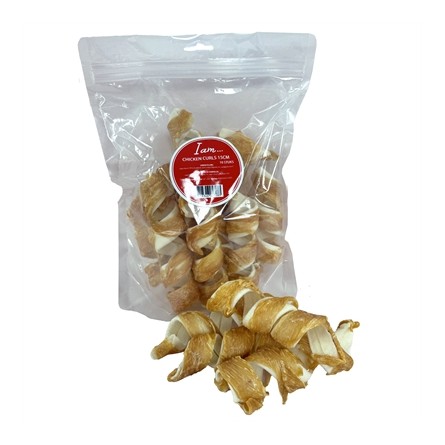 De I Am Chicken Curl 15 cm 10 st is een lekkere kauwsnack van runderhuid, gewikkeld in gedroogde kippenborst, zonder suiker en gluten. De krul is gemaakt van runderhuid om op te kauwen met een jasje van kip. Kauwen op runderhuid gaat verveling tegen en helpt bij het verzorgen van het gebit, omdat de huid langs de tanden wrijft en zo tandplak en tandsteen helpt te verminderen.