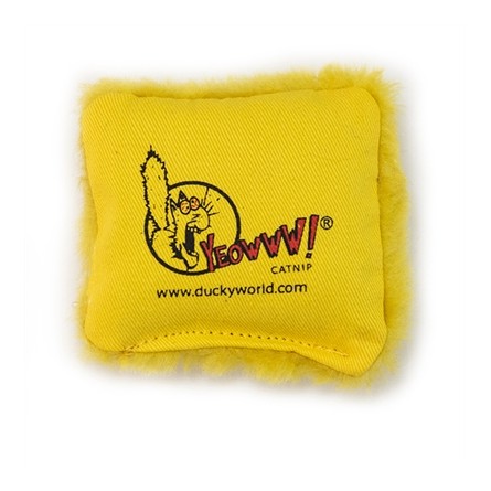 De Yeowww Pillow is een compact kattenspeeltje in kussenvorm, speciaal ontworpen voor katten die dol zijn op kattenkruid. Het stevige katoenen materiaal is gevuld met 100% biologisch kattenkruid en nodigt uit tot rollen, knuffelen en ravotten. Dankzij de plantaardige kleurstoffen is dit speeltje niet alleen leuk, maar ook bewust gekozen.