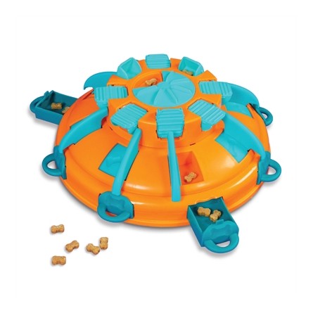 De Nina Ottosson Tower of Treats is een uitdagende Level 4 puzzel voor honden die eerdere puzzelniveaus al onder de knie hebben. In deze speluitdaging moet je hond elke laag één voor één ontgrendelen om bij de verborgen snacks te komen. Begin eenvoudig met alle lagen ontgrendeld en verhoog geleidelijk de moeilijkheidsgraad naarmate je hond het spel doorheeft. Zo kun je het spel blijven aanpassen aan het probleemoplossend vermogen van je hond.