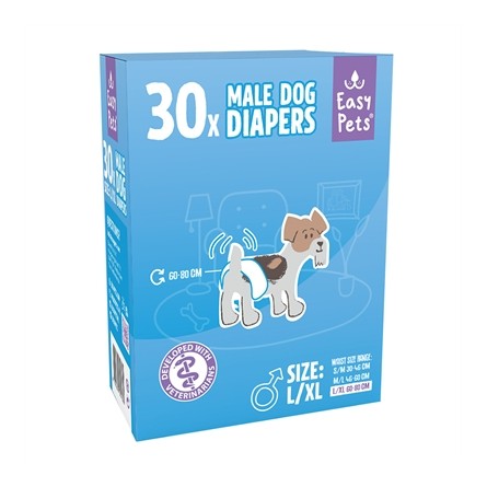 EasyPets hondenluiers voor reuen zijn de ideale oplossing bij ongewenst urineverlies of markeergedrag. Deze wraps zijn speciaal ontworpen voor het mannelijk lichaam en combineren comfort met effectieve bescherming. Het ademende, zachte materiaal voorkomt huidirritatie, terwijl de superabsorberende kern vocht snel en veilig opneemt.