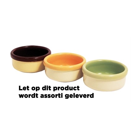 De Rosewood Options Voerbak Hamster Twee-Kleur Assorti van 9 cm is een stevige, vaatwasser-bestendige voer- of drinkbak voor jouw knaagdier.