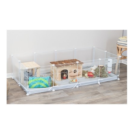 De Trixie Indoorren Metaal / Kunststof Wit van 140 x 70 x 35 cm is een praktische indoorren voor knaagdieren als cavia's, voor binnenshuis en naar wens uit te breiden. Geef jouw dier meer bewegingsvrijheid in huis zonder het risico op doorgeknaagde kabels! Elke dag lekker een paar uur de ruimte hebben om te bewegen is essentieel voor een gezonde konijn of knager. Biedt jouw dier die ruimte met deze handige, eenvoudig te monteren indoor ren van Trixie. Deze ren bestaat uit 12 componenten, waarvan 6 van metaal en 6 van kunststof met metalen frame, van elk 35 x 35 cm per stuk. De ren is op verschillende manieren in elkaar te zetten en ook uit te breiden, en voor konijnen dubbel zo hoog te maken. De ren beschermt jouw planten, meubilair en kabels tegen de tanden van jouw viervoeter en zorgt zo voor meer veiligheid.